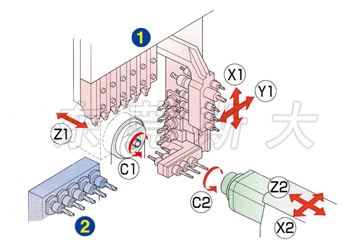 | 四、斯大走心機SR-32JMtypeN橫向鉆孔5軸單元下方2軸,采用模塊化設計,可根據工件需要自由安裝可交換式工具,實現工藝的靈活性,同時正背面套筒座及背面專用單元,也可根據用戶需要選擇最合適的套筒座及刀具單元軸數量。 | |||