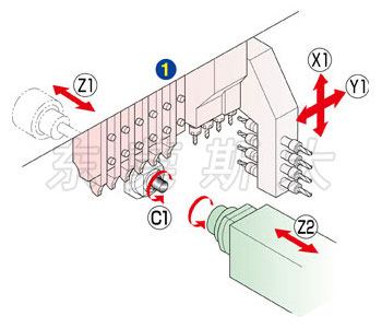 | 四、斯大走心機SB-20RtypeC在標準規格橫向鉆孔單元4軸的基礎上,可配備橫向鉆孔單元5軸型、可交換式橫向鉆孔單元5軸型/5軸高速型4種刀架臺,而可交換式橫向鉆孔單元5軸中的右側3軸,采用模塊化設計配備豐富的刀具單元,可根據工件需要自由安裝多種可交換式工具,展開多樣的復合加工。 |