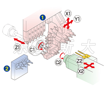 | 四、斯大走心機SR-20JIItypeA橫向鉆孔5軸單元下方2軸,采用模塊化設計,可根據(jù)工件需要自由安裝可交換式工具,實現(xiàn)工藝的靈活性,通過功能模塊的組合,輕松實現(xiàn)各種變化,以此獲得機床的最佳結構。 | |||